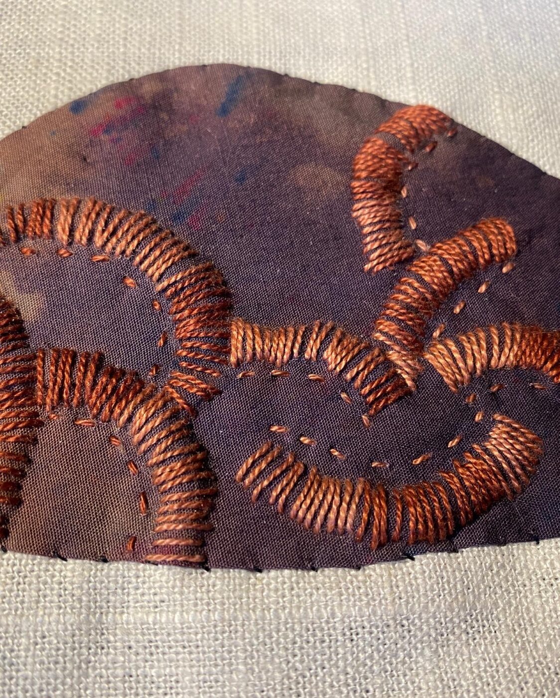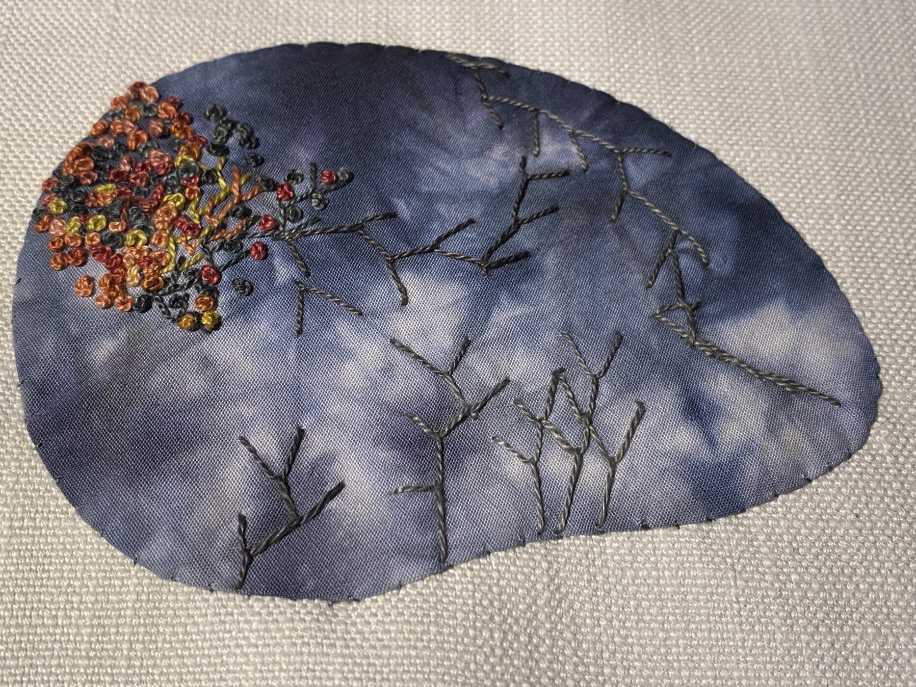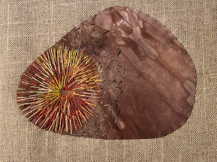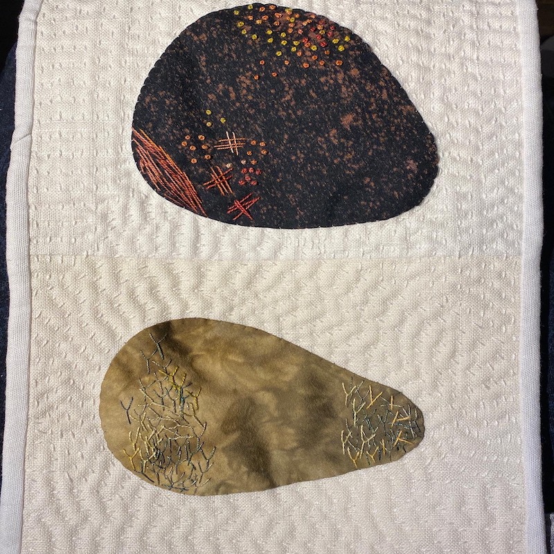 On January 21st, during the Embellished Rocks workshop, we’ll explore how to turn small pieces of different fabrics into beautifully textured “rocks.” You’ll combine hand-painted, hand-printed, and commercial fabrics to create your own rock formations, appliqué them onto a background, and then bring them to life with simple hand stitches and embellishments.